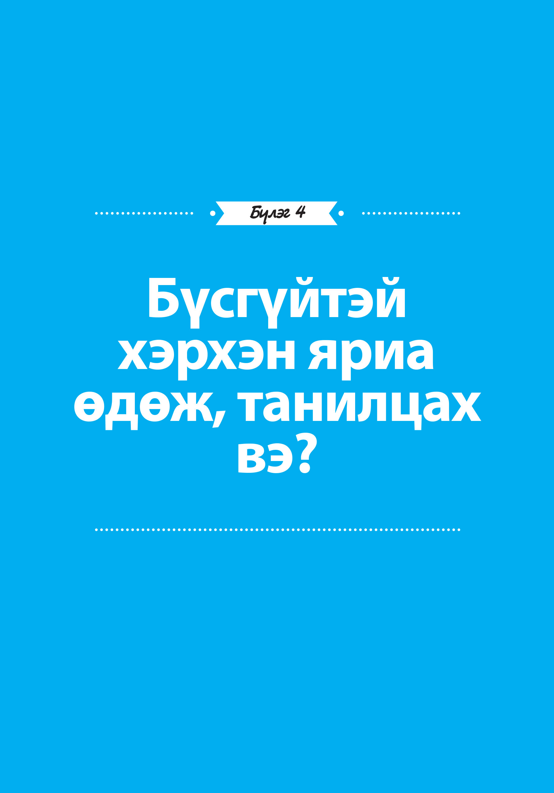 ДӨРӨВДҮГЭЭР БҮЛЭГ: ТАНИЛЦСАНЫ ДАРАА